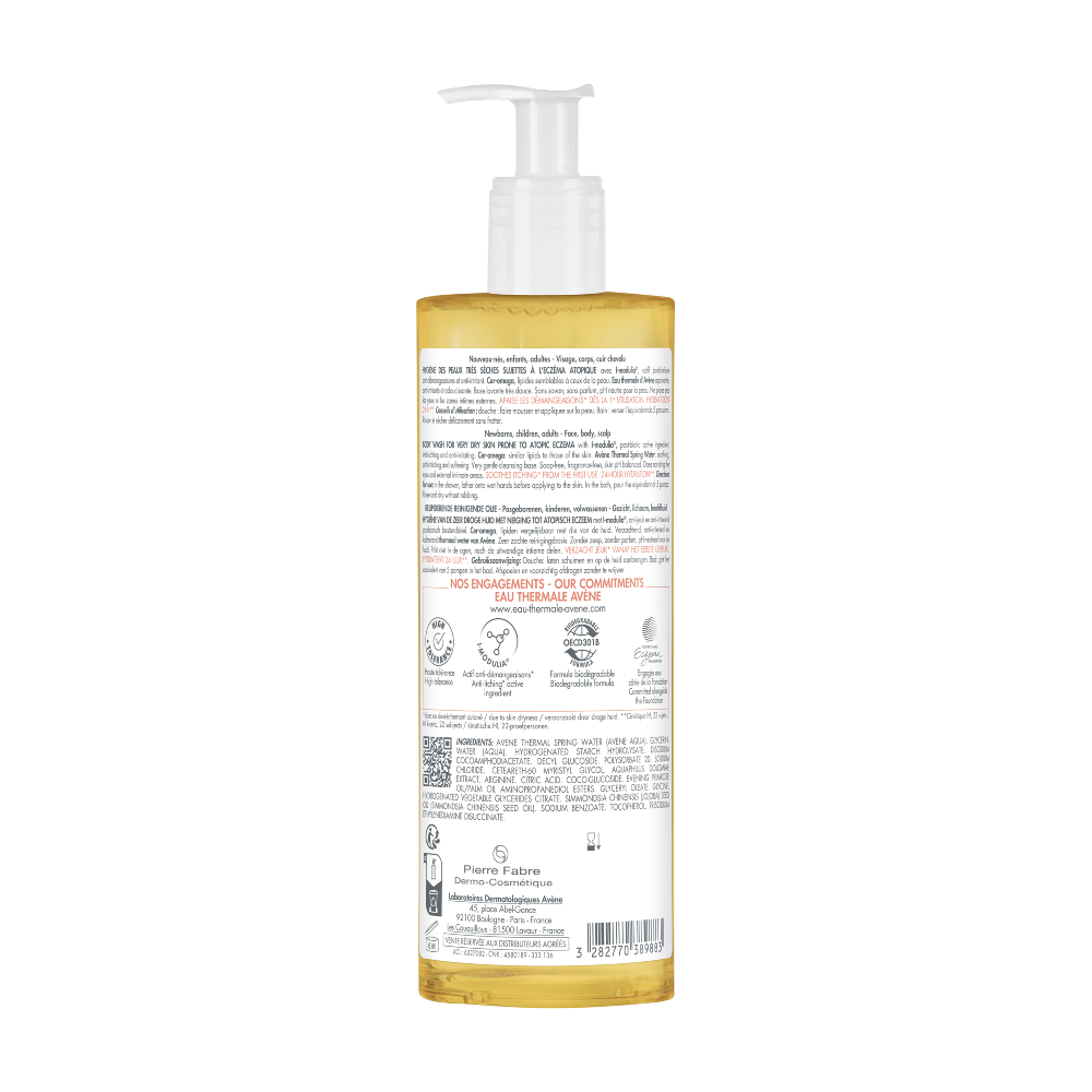 Higiene de las pieles muy secas y sensibles. Rostro, cuerpo, cuero cabelludo. Recién nacidos, niños, adultos. Sin jabón. Sin perfume, PH neutro. No pica en los ojos ni en las zonas íntimas externas.